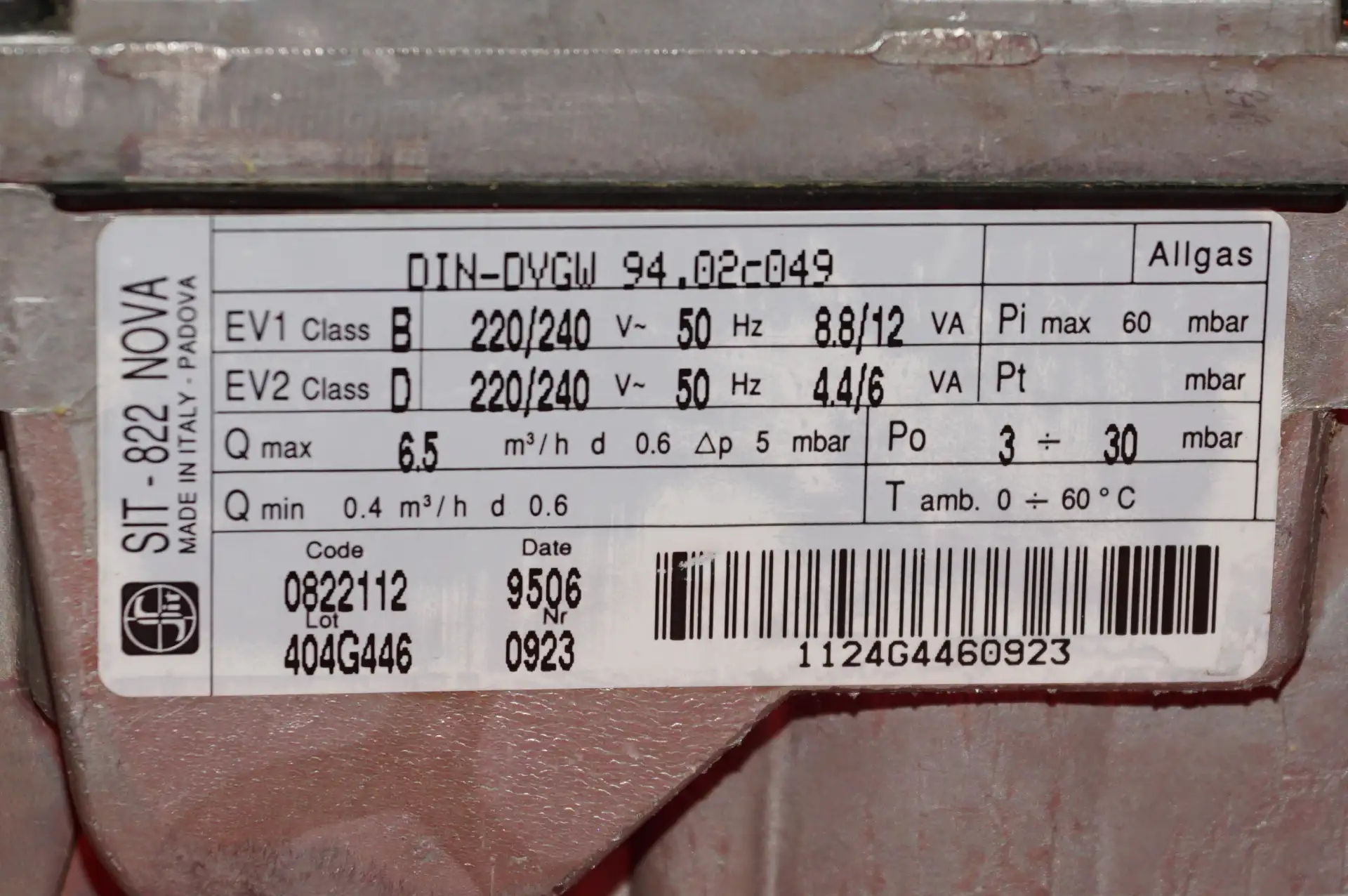 SIT Gaskombiregler Nova 822 0822112