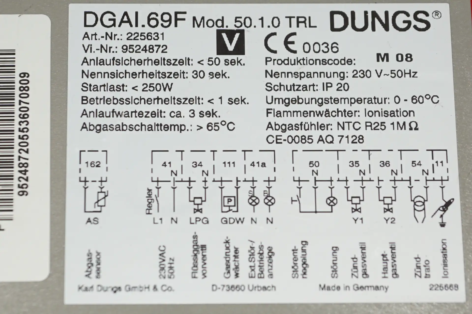 Um die einwandfreie Funktion und Betriebssicherheit gewährleisten zu können, wurde der Brennerautomat eingehend in sämtlichen Betriebsparametern mittels Prüfaufbau vor dem Verkauf geprüft.