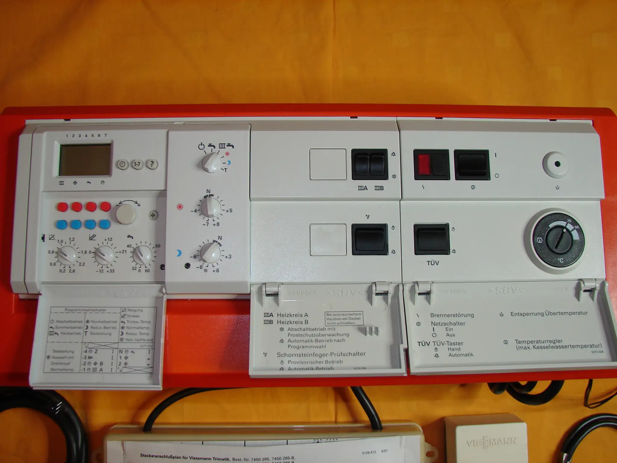 Die Trimatik 7450286 / 7450285 kann neben baugleichen Modellen auch unzählige andere Viessmann Regelungen ersetzen. Hier kann ich vollumfänglich beraten. Sämtliches Zubehör ist über die Abbildungen hinaus vorhanden und kann bei Bedarf mitgeliefert werden. Die abgebildeten Fühler sowie der Montagebügel kosten jeweils 10,- Euro, die Stecker lediglich 2,- Euro/Stück. Die Trimatik kann aber auch Regelungen andere Hersteller ersetzen. Es ist ihr völlig egal ob sie Temperaturen aus einem Viessmann, Buderus, Wolf... - Heizkessel ermittelt und welchen Herstellers die Heizungspumpen sind. Bitte hier immer vor dem Kauf anfragen -