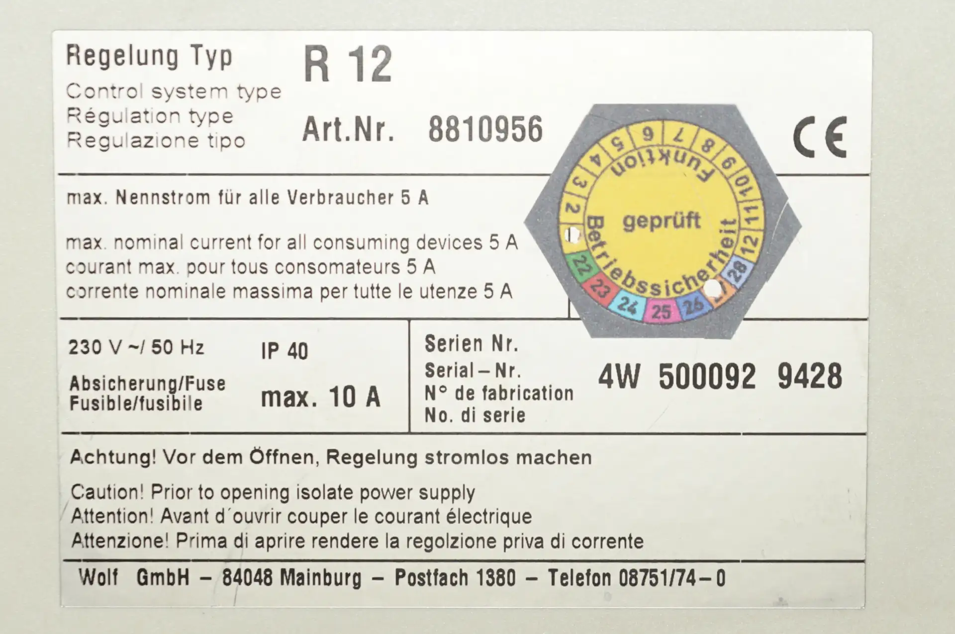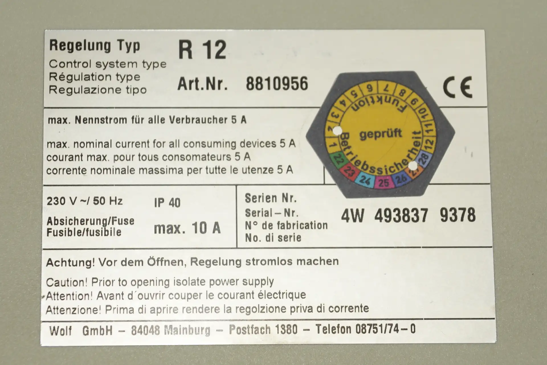 Wolf R12 4W DigiCompact 8810956 Kesselregelung